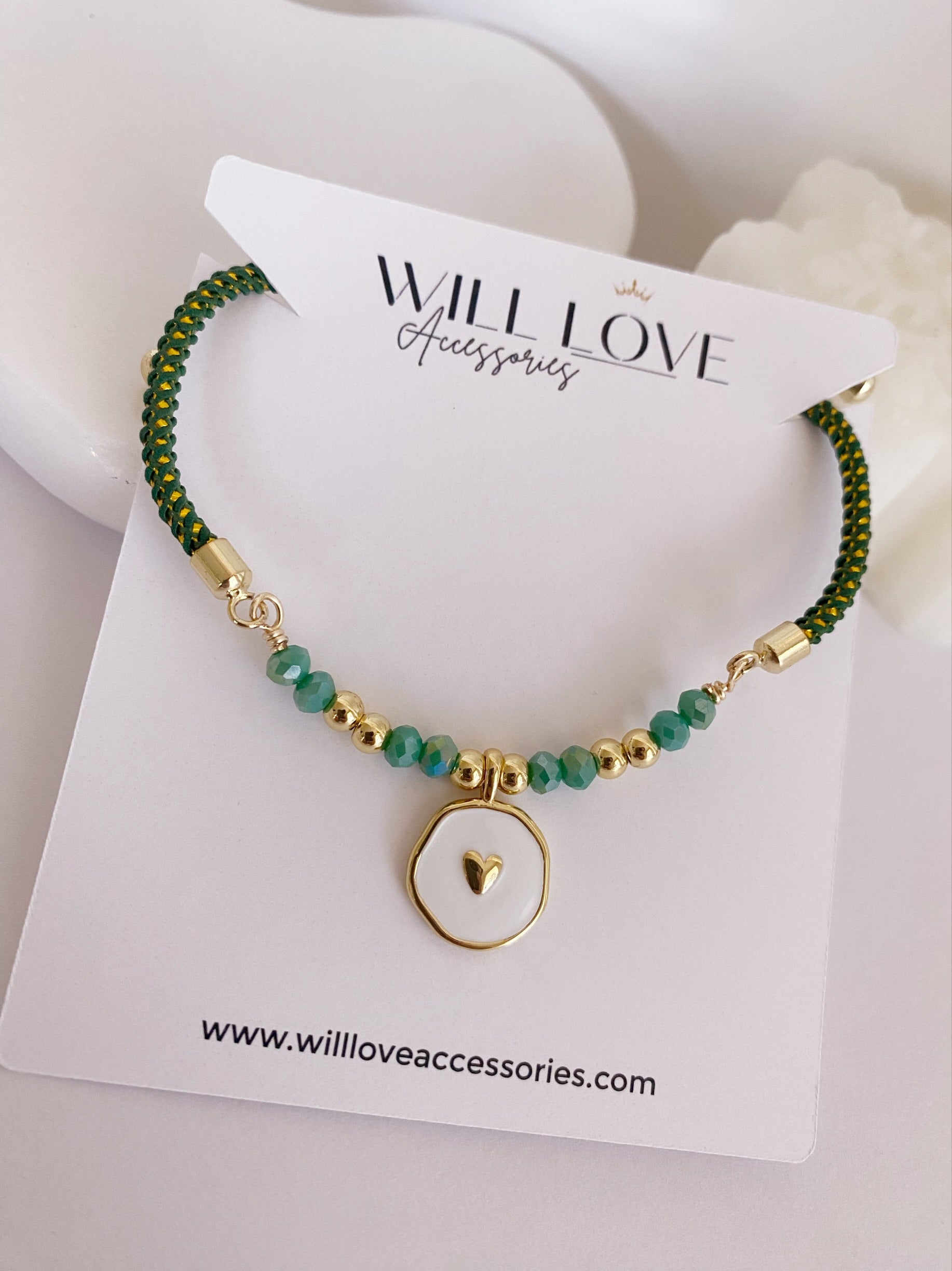 Pulsera en cordón ajustable con apliques en gold plated 18 k