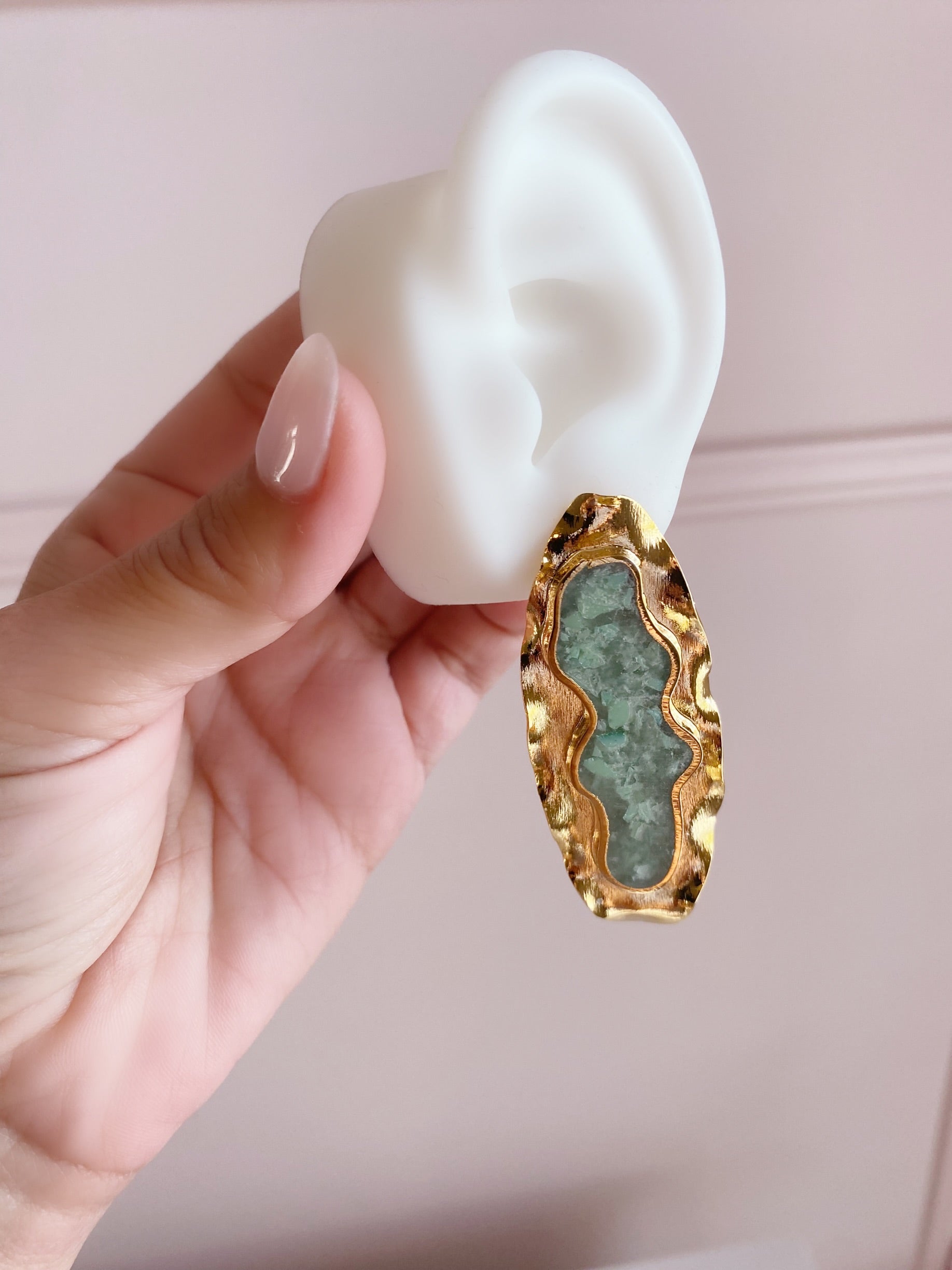 Aretes en bronce chapados en 24 k con piedra color turquesa.