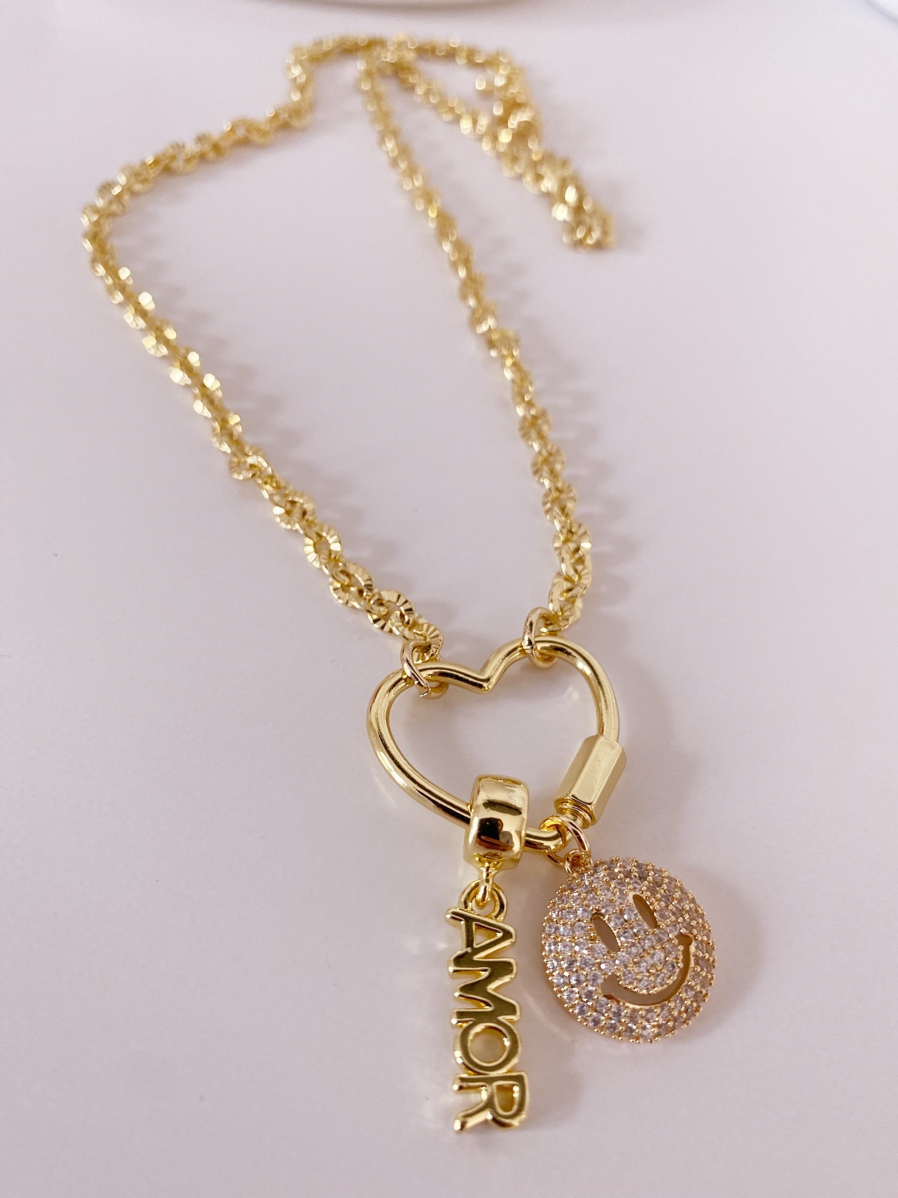 Collar en cadena de acero inoxidable chapada en oro de 18 k .