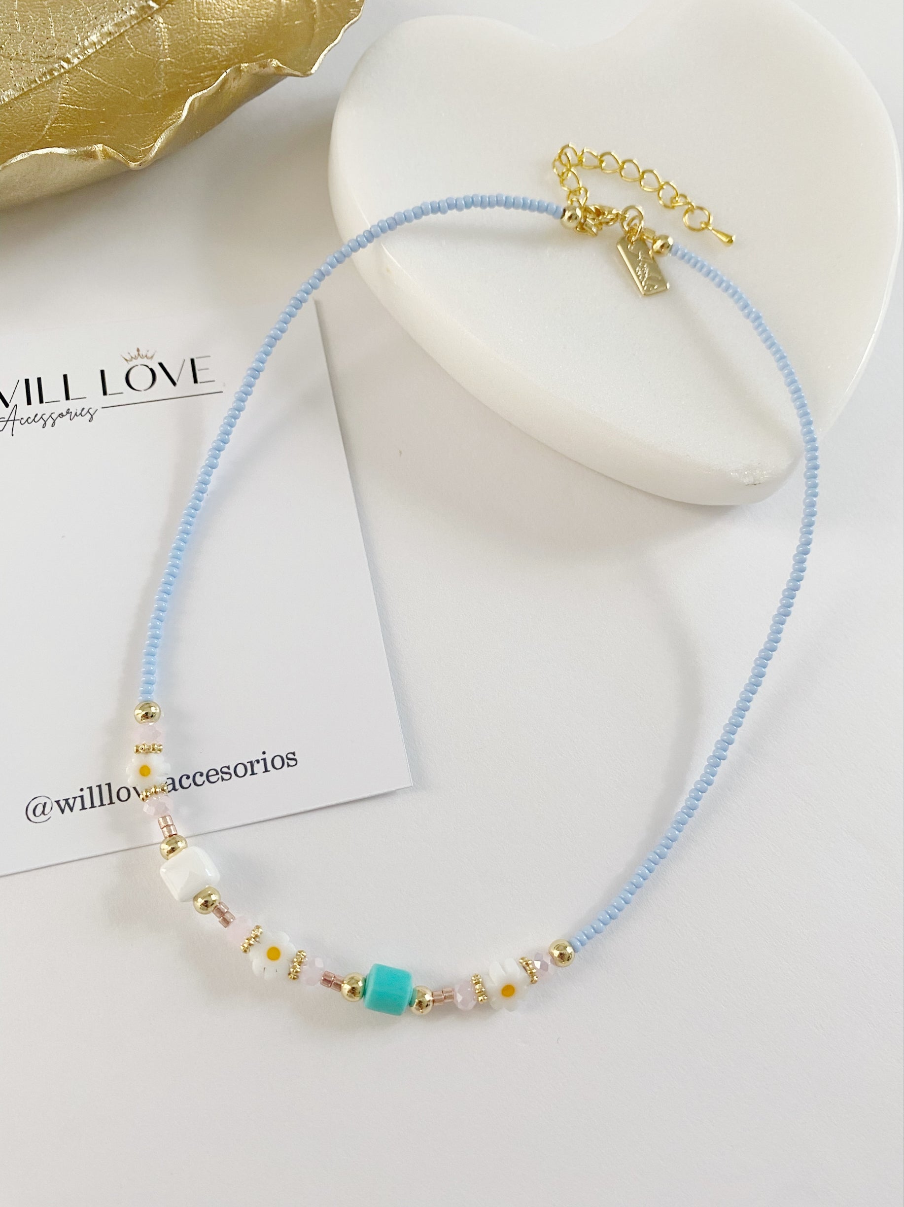 collar ajustable en cuentas de cristal checo apliques con enchape en oro 18k