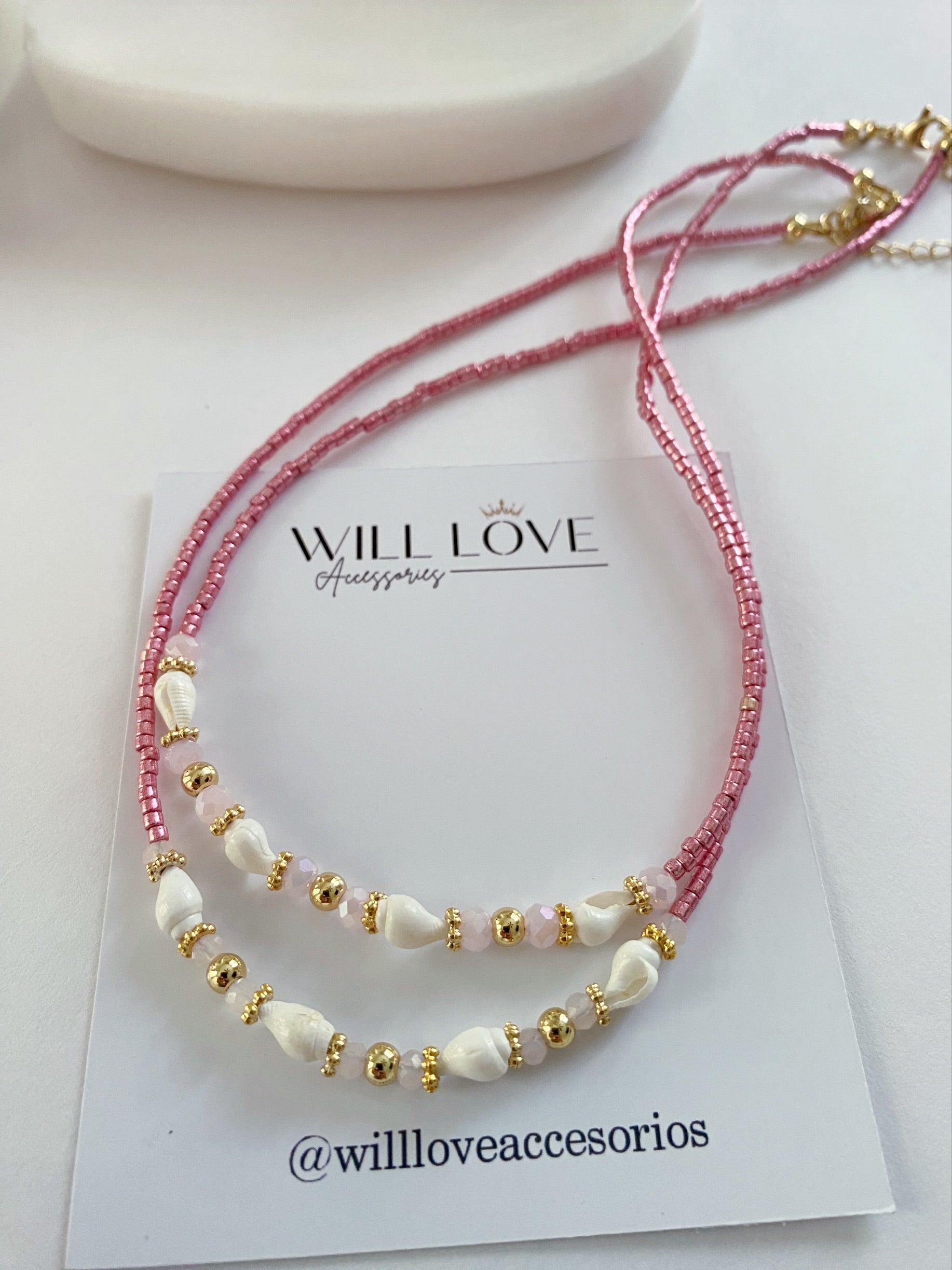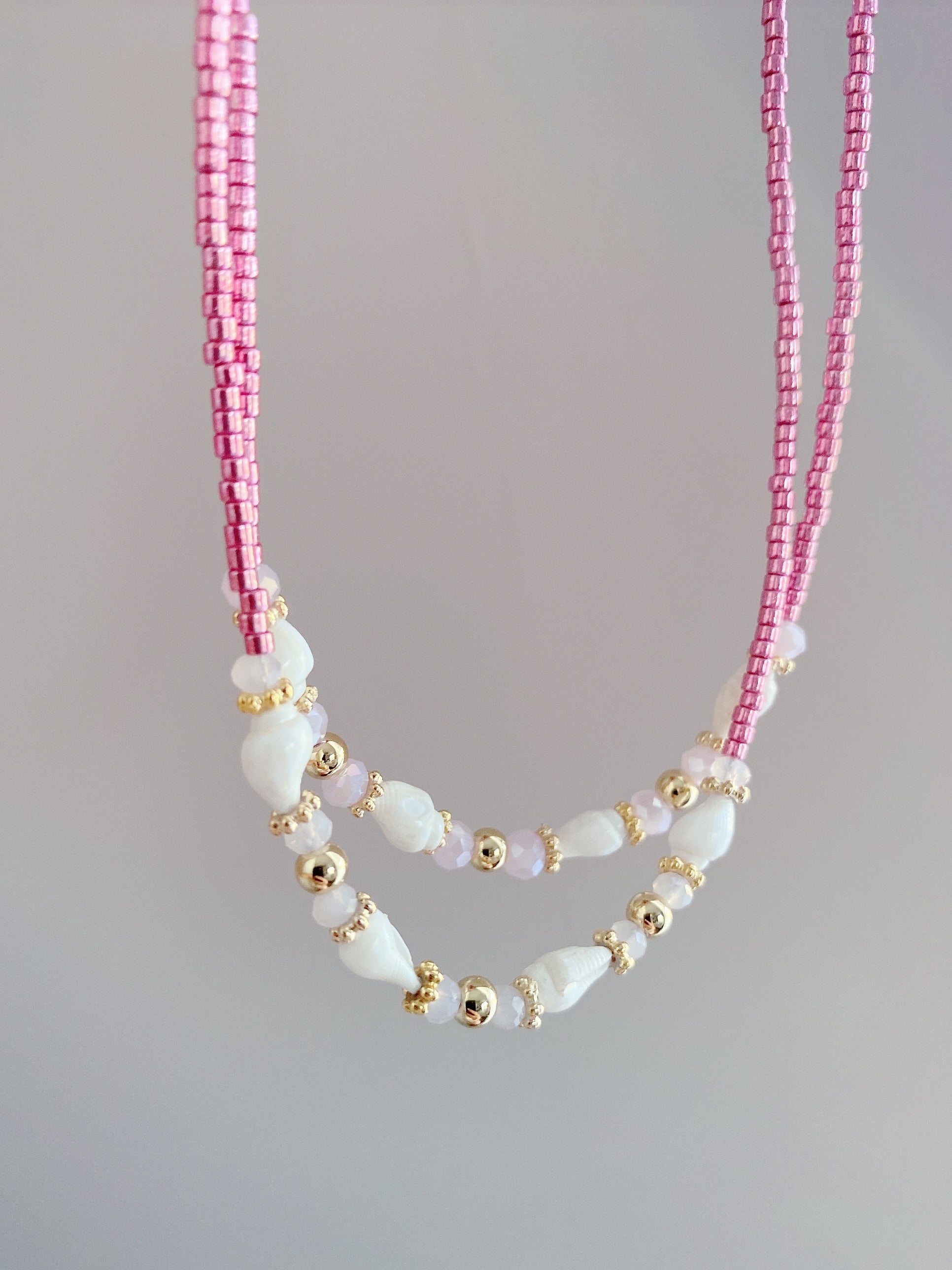 Collar en miyuki y conchas de mar con apliques en gold plated 18k