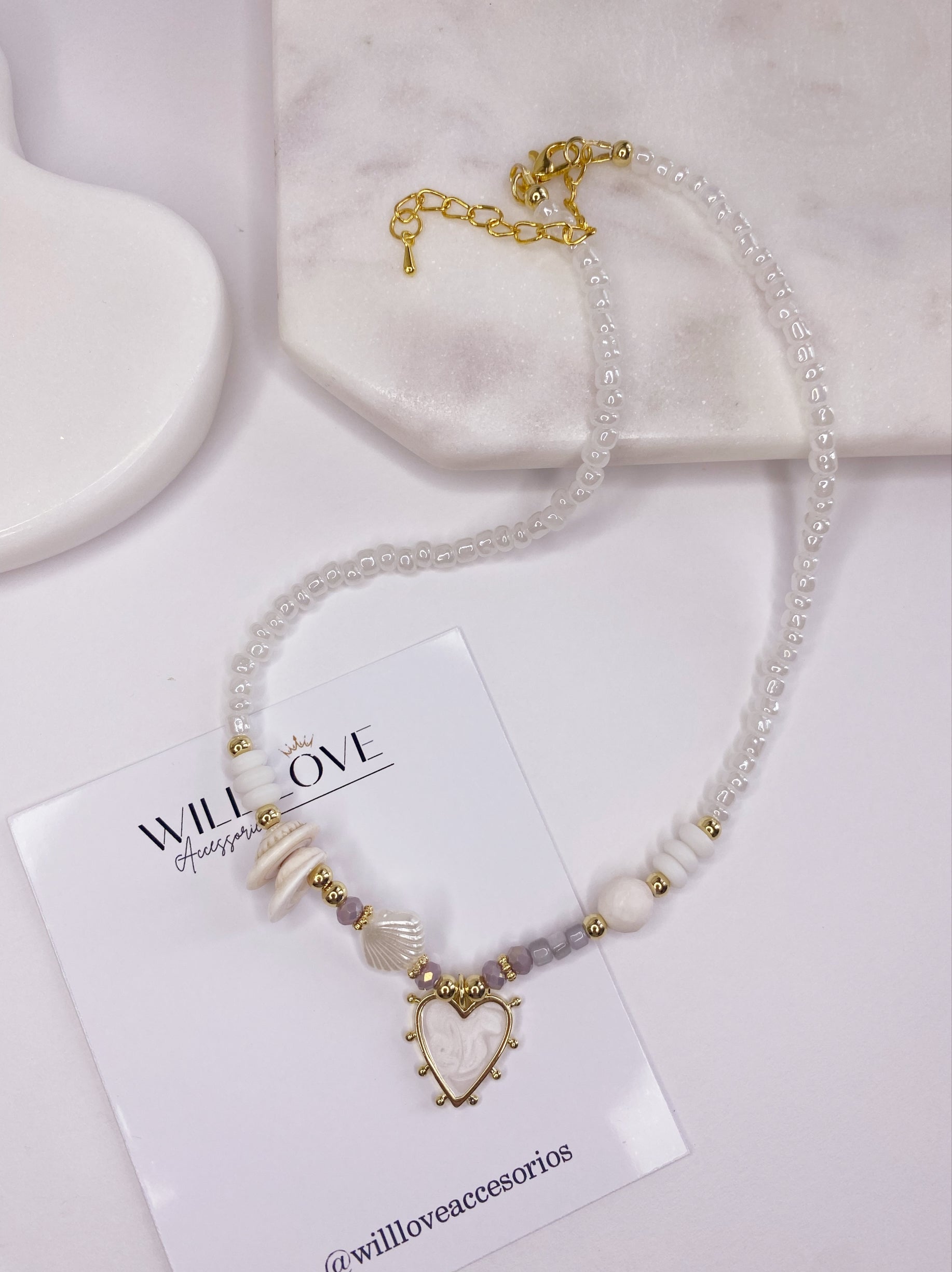 collar en cuentas de cristal con piedras naturales con apliques en gold plated 18k