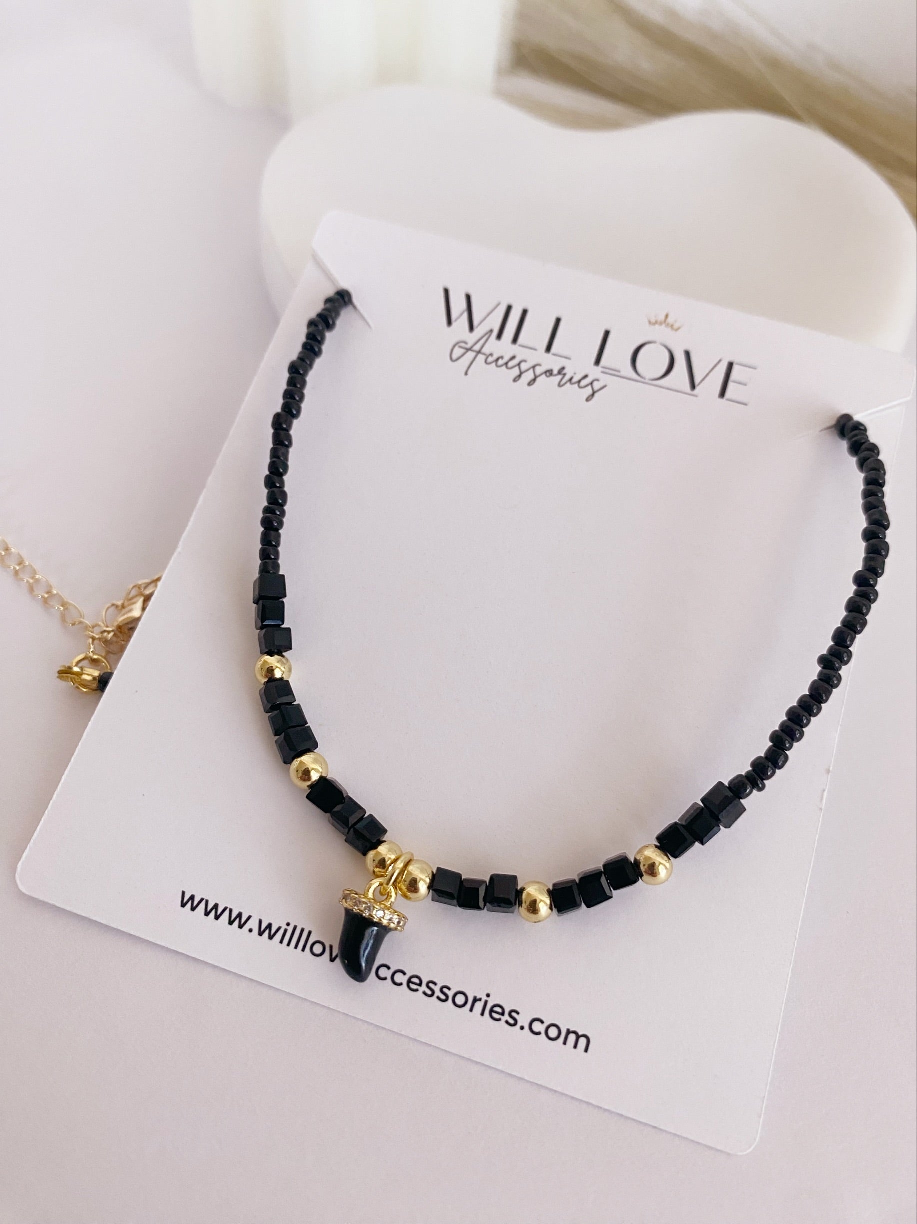 Collar ajustable en cuentas y apliques en gold plated 18k