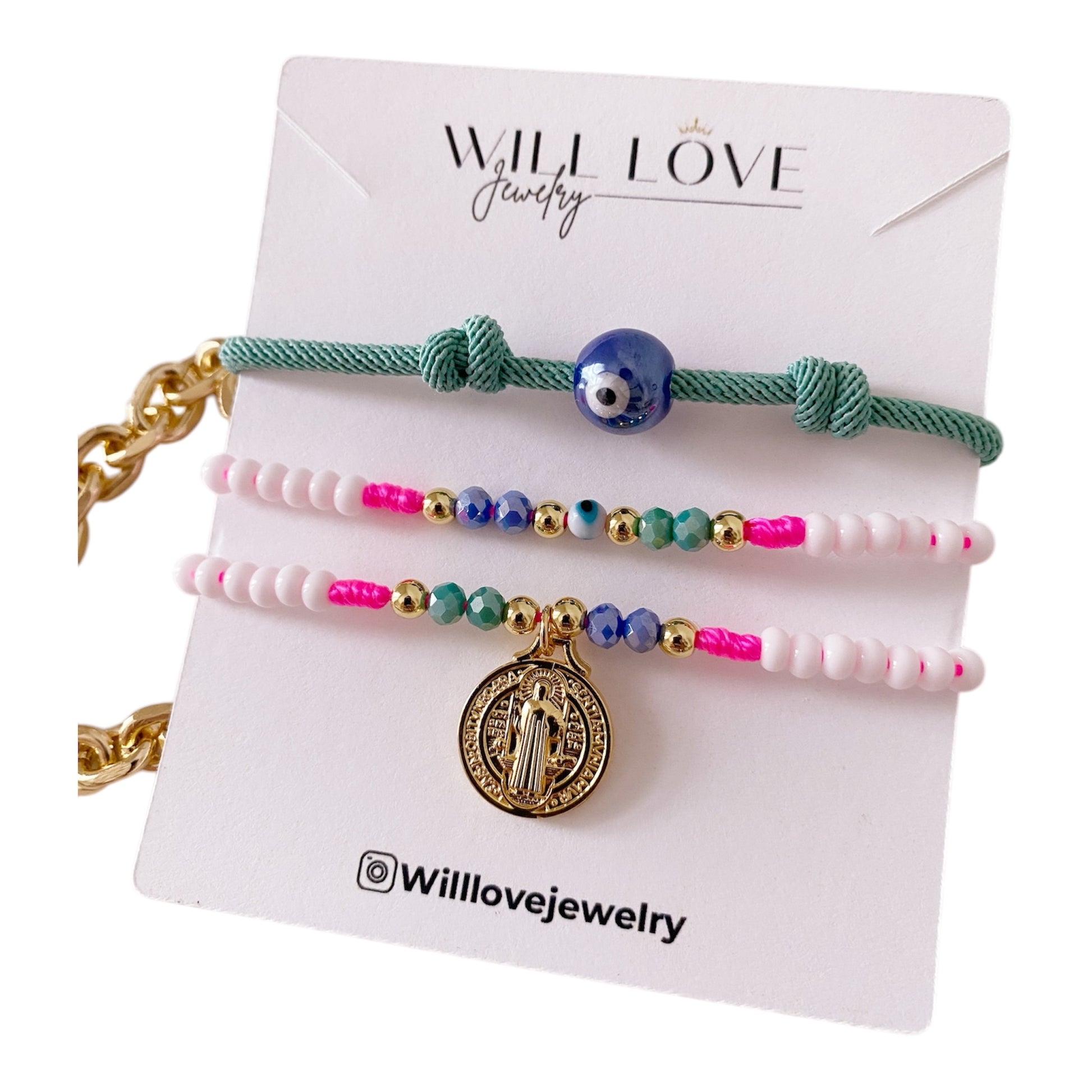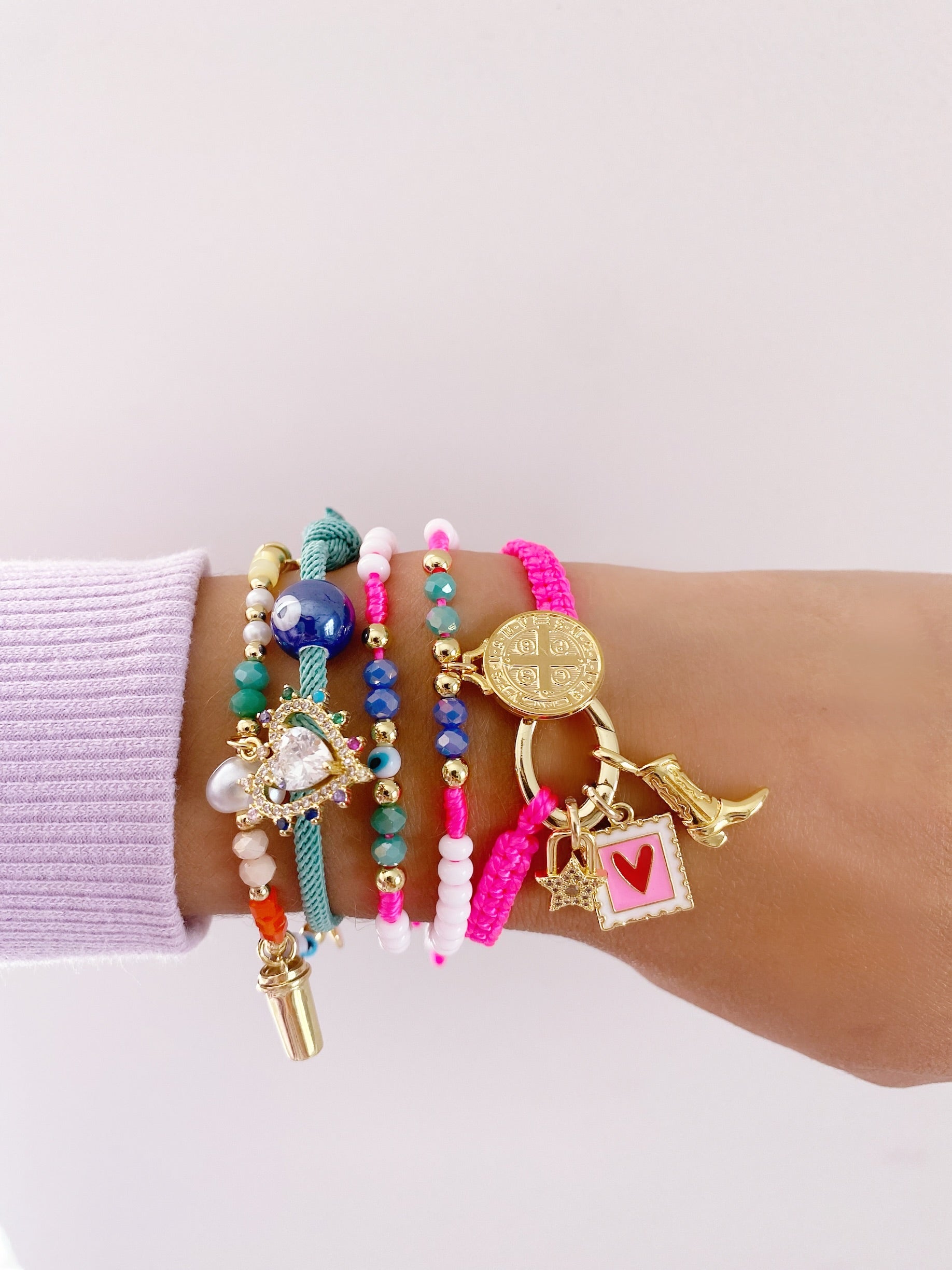 - cordón , hilo , cuentas de cristal checo y apliques en gold plated 18 k