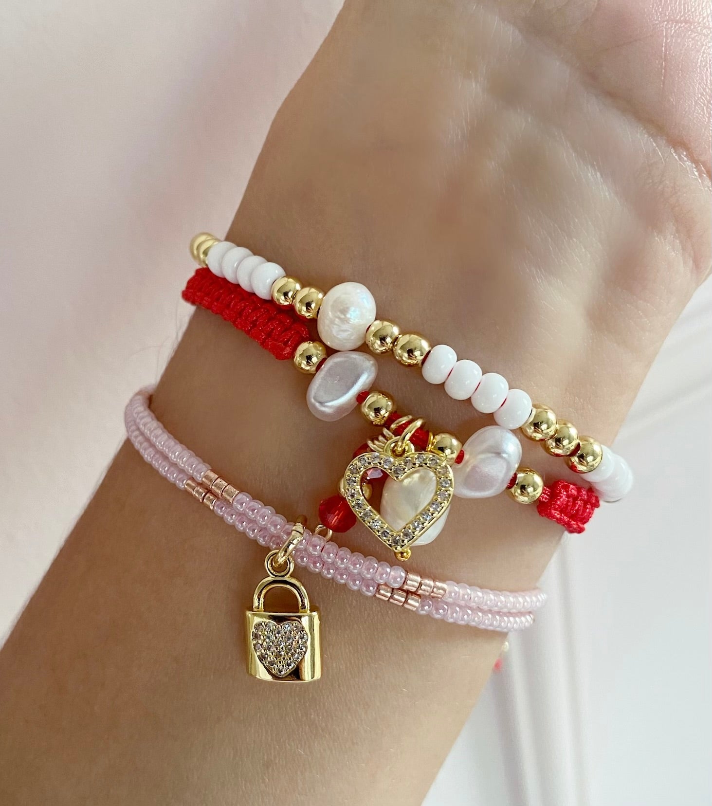 Set de 3 pulseras ajustables con apliques chapados en oro de 18 k