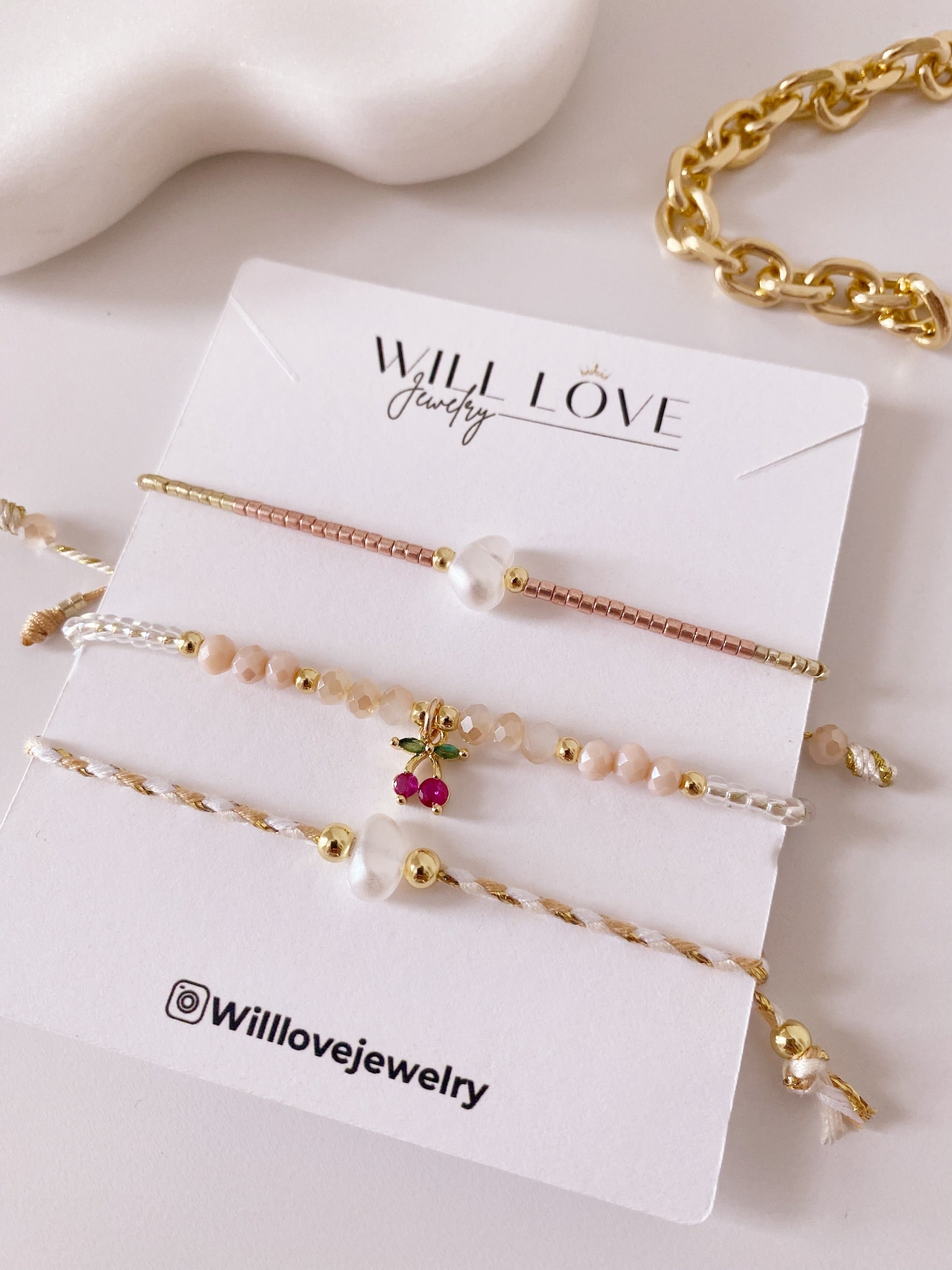 - Hilo , cordón , cuentas de cristal checo , apliques en gold plated 18 k
